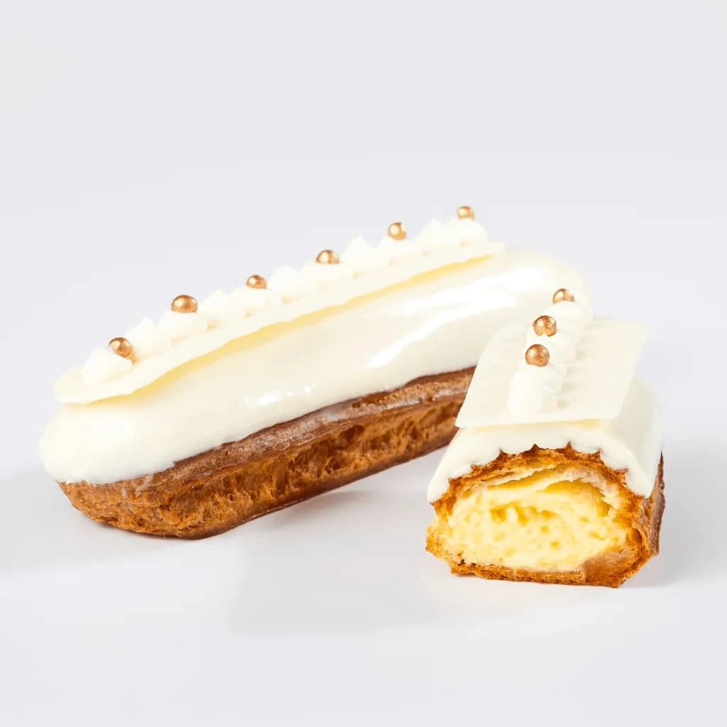 مخبوز اكلير بالوايت شوكلت . محشو بالكاسترد. طازجه إنتاج اليوم