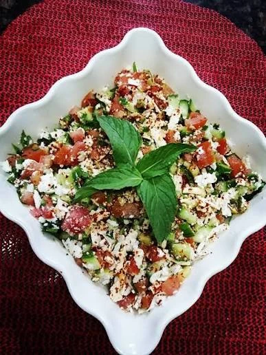 سلطه جبنه قريش مضاف إليها فلفل و حبه البركه و بعض الزيوت لطعم فريد