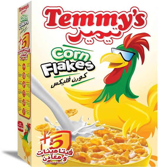 علبه كورن فليكس من تيميز . تحتوي على ٢٥ جرام . تحضر باللبن بارد او ساخن
