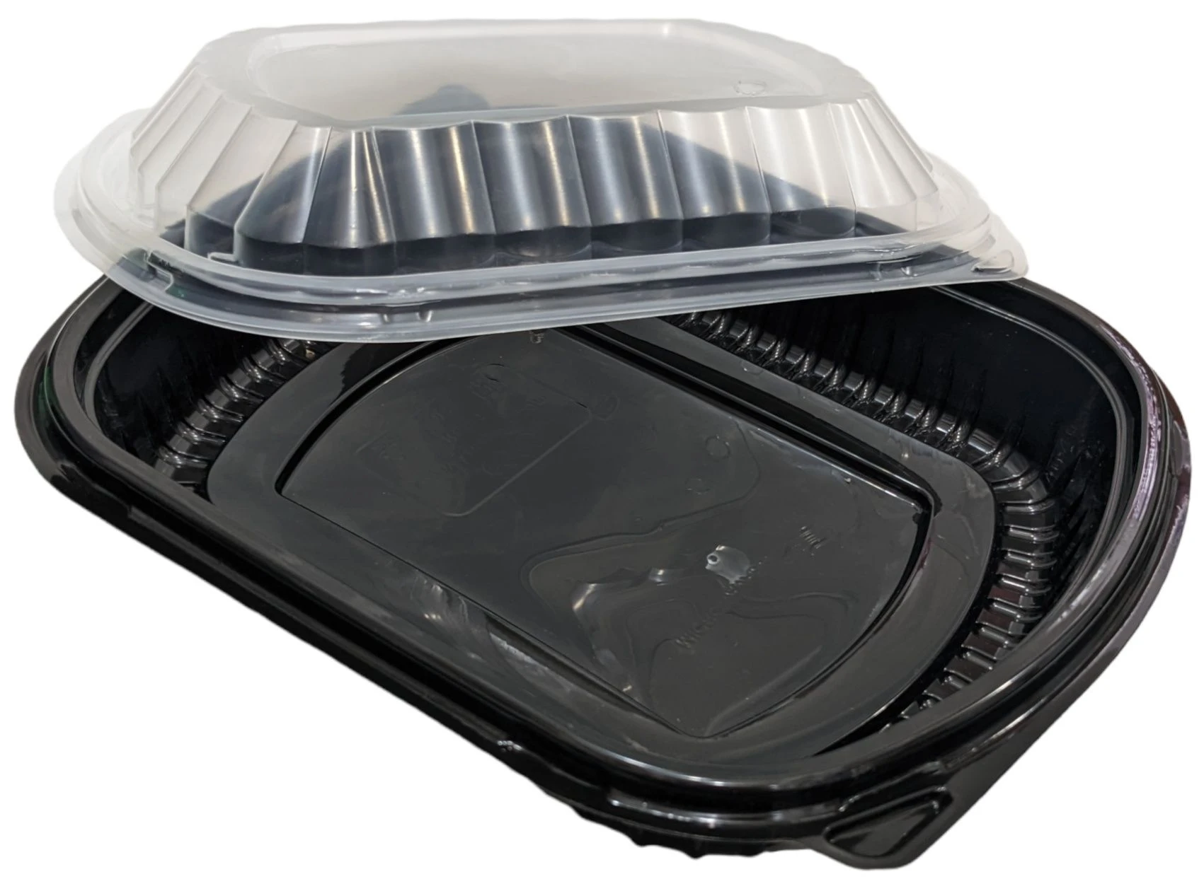 طبق اسود مسطح بالغطاء بلاستيك بالقطعه